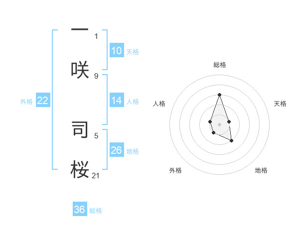 一咲 司桜さんの外格は22画の1点!