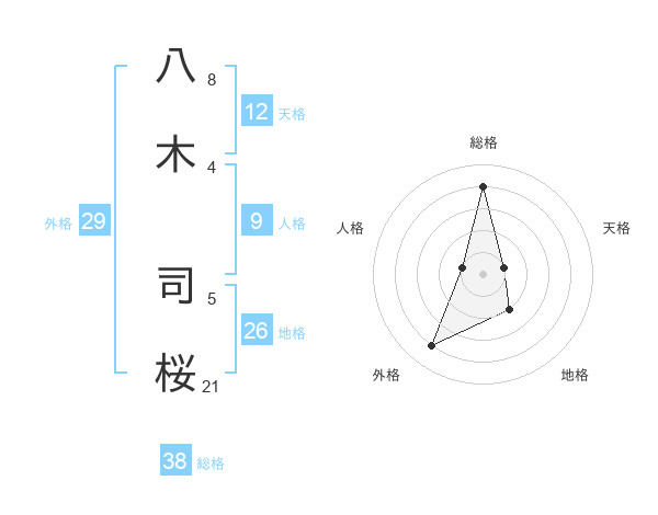 八木 司桜さんの総格は38画の4点!