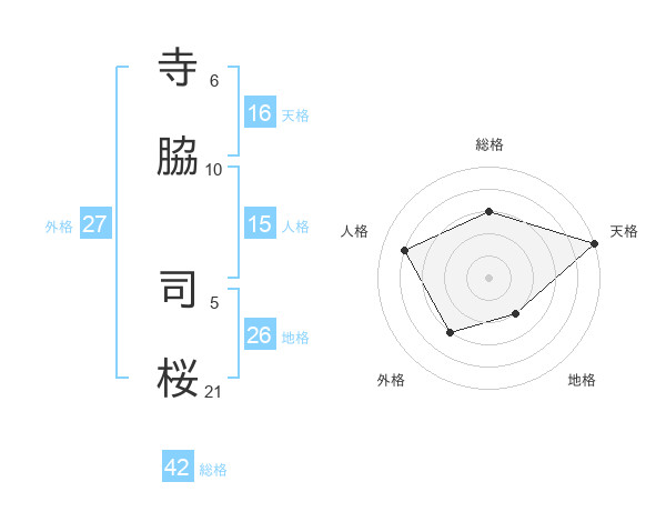 寺脇 司桜さんを姓名の画数から五運を鑑定
