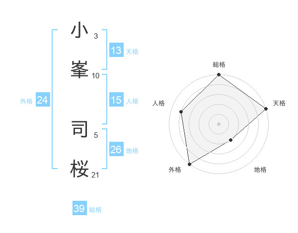 小峯 司桜さんの総格は39画の5点!