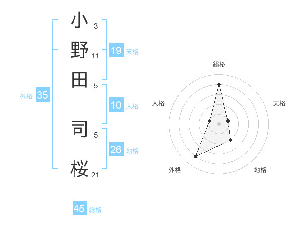 小野田 司桜さんを姓名の画数から五運を鑑定
