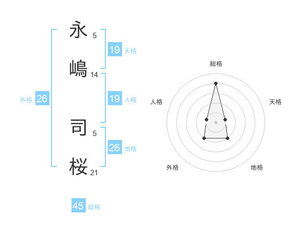 永嶋 司桜さんを姓名の画数から五運を鑑定