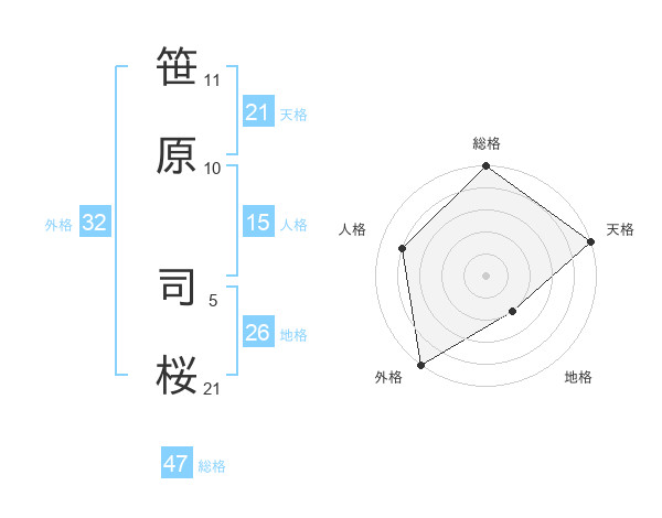 笹原 司桜さんの総格は47画の5点!
