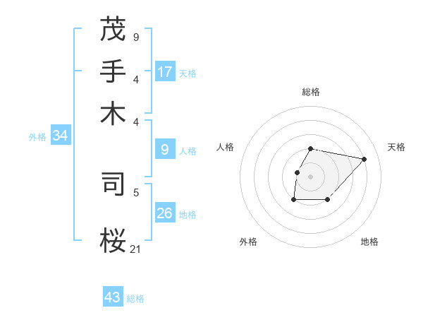 茂手木 司桜さんの天格は17画の4点!
