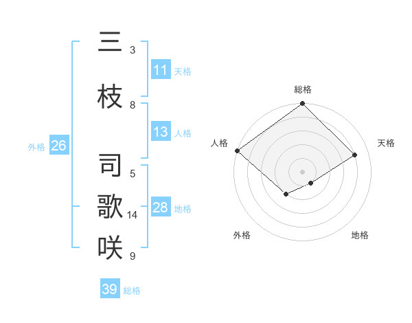 三枝 司歌咲さんを姓名の画数から五運を鑑定