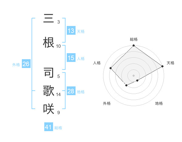 三根 司歌咲さんの総格は41画の5点!