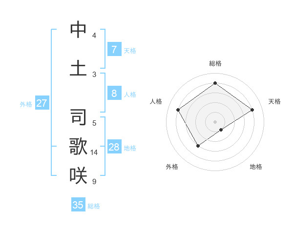 中土 司歌咲さんを姓名の画数から五運を鑑定