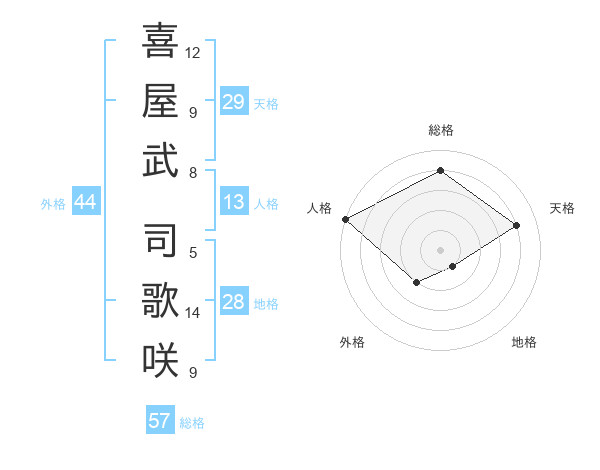 喜屋武 司歌咲さんを姓名の画数から五運を鑑定