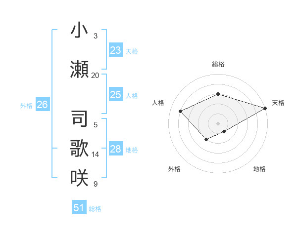 小瀬 司歌咲さんの総格は51画の3点!