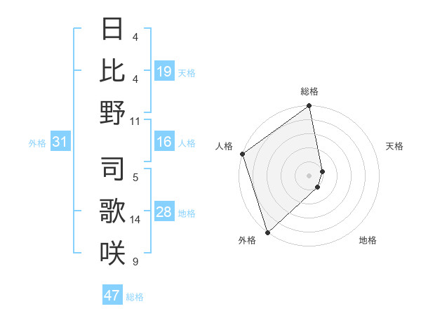 日比野 司歌咲さんを姓名の画数から五運を鑑定