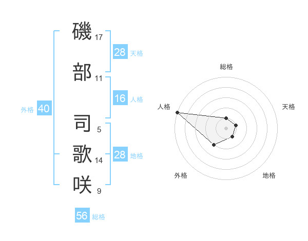 磯部 司歌咲さんを姓名の画数から五運を鑑定