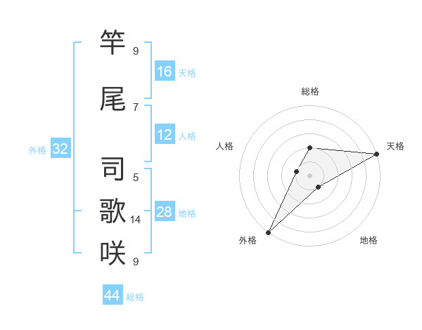 竿尾 司歌咲さんの天格は16画の5点!