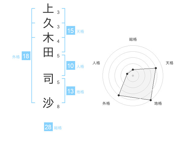 上久木田 司沙さんの総格は28画の1点!