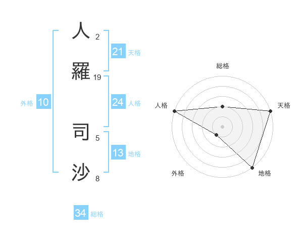 人羅 司沙さんを姓名の画数から五運を鑑定