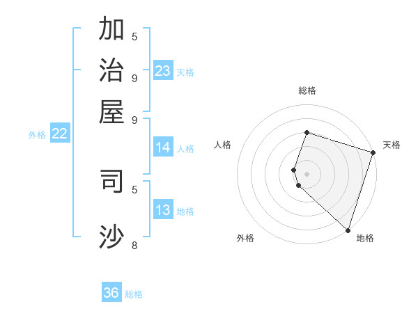 加治屋 司沙さんを姓名の画数から五運を鑑定