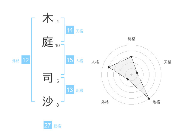 木庭 司沙さんを姓名の画数から五運を鑑定