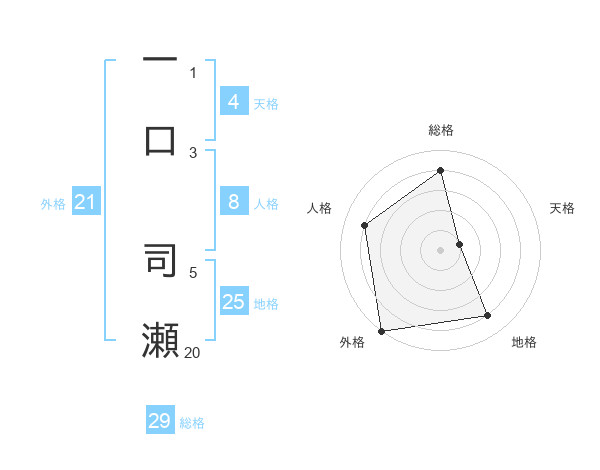 一口 司瀬さんの総格は29画の4点!