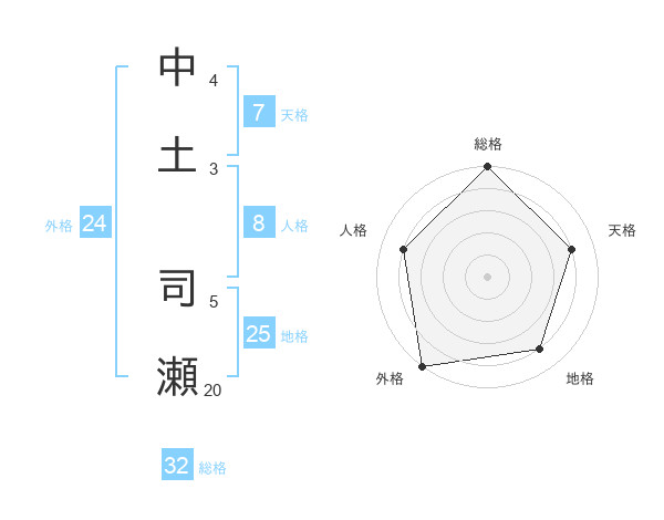 中土 司瀬さんを姓名の画数から五運を鑑定
