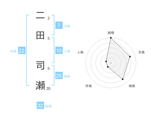 二田 司瀬さんを姓名の画数から五運を鑑定