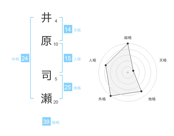 井原 司瀬さんを姓名の画数から五運を鑑定