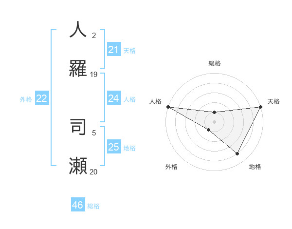人羅 司瀬さんの地格は25画の4点!