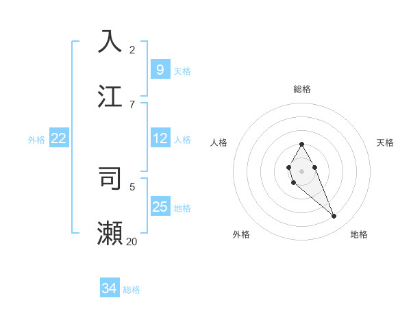 入江 司瀬さんの外格は22画の1点!
