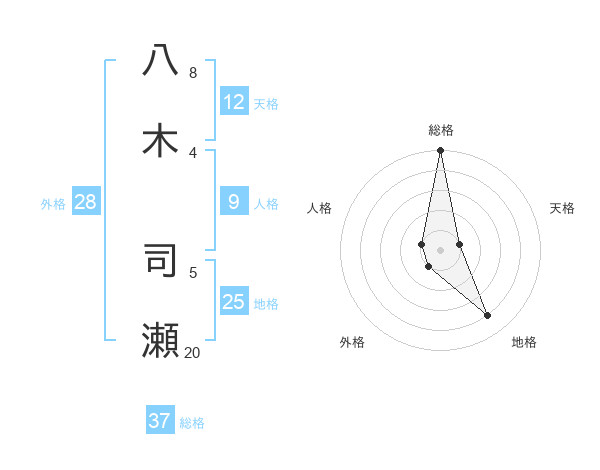 八木 司瀬さんの総格は37画の5点!