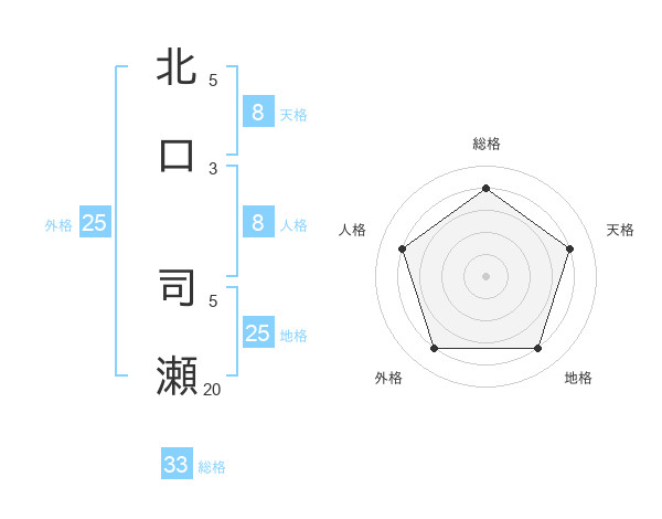 北口 司瀬さんの総格は33画の4点!