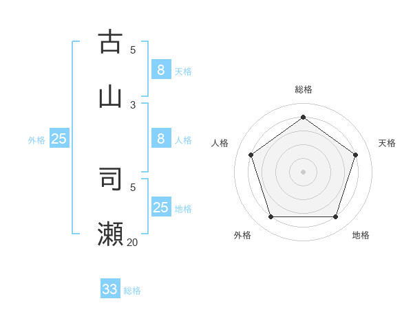 古山 司瀬さんを姓名の画数から五運を鑑定
