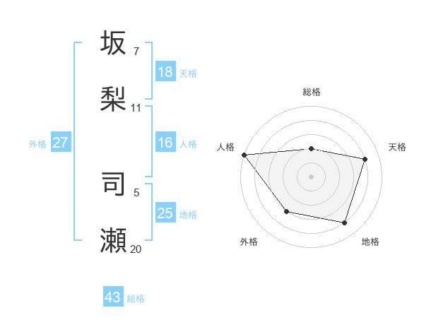 坂梨 司瀬さんの人格は16画の5点!