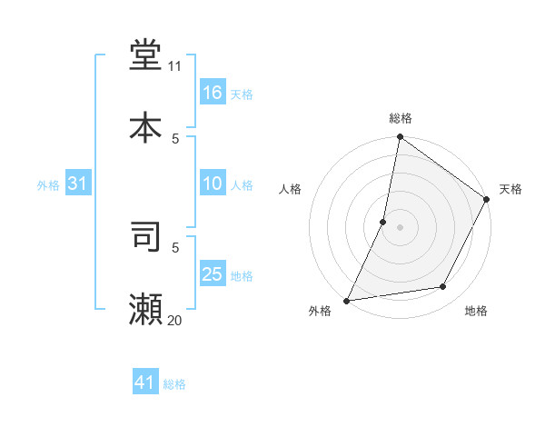堂本 司瀬さんを姓名の画数から五運を鑑定