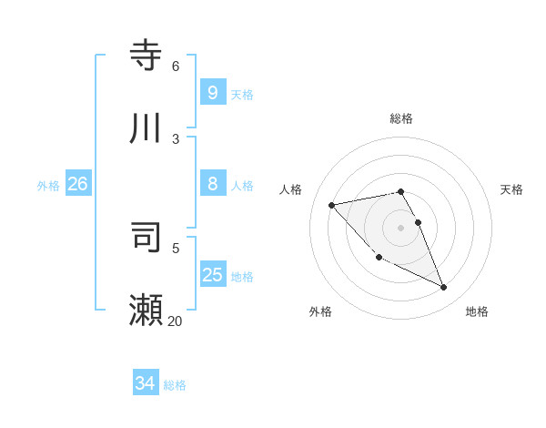 寺川 司瀬さんの総格は34画の2点!