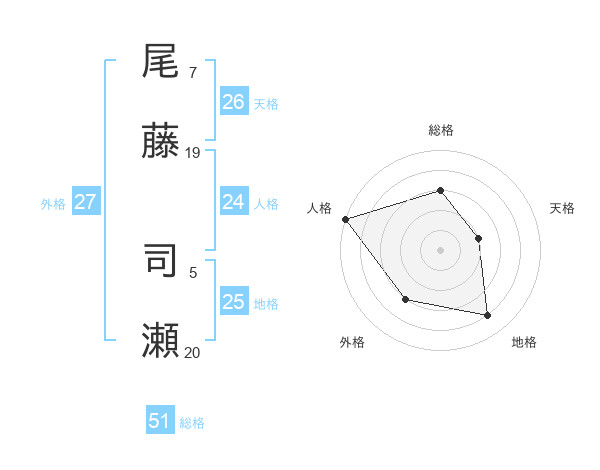尾藤 司瀬さんの総格は51画の3点!