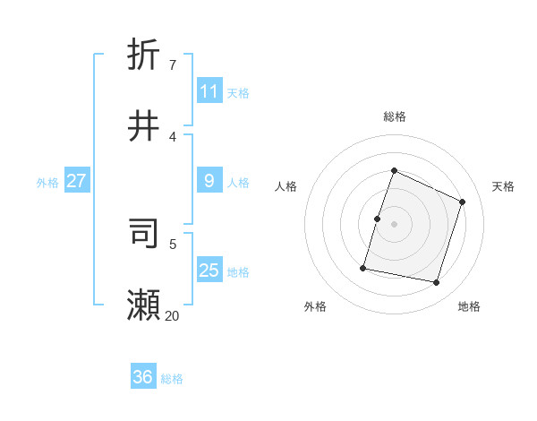 折井 司瀬さんを姓名の画数から五運を鑑定