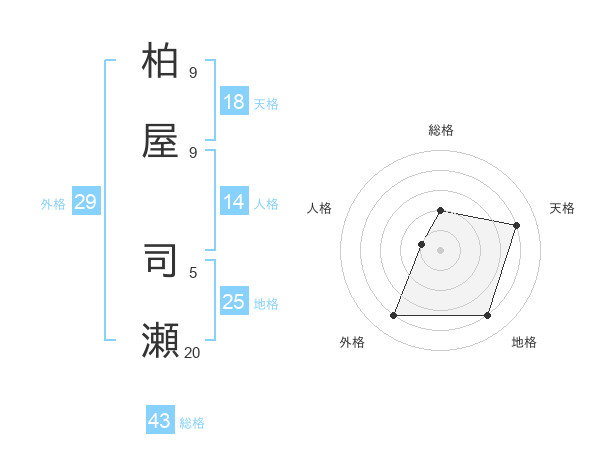 柏屋 司瀬さんを姓名の画数から五運を鑑定