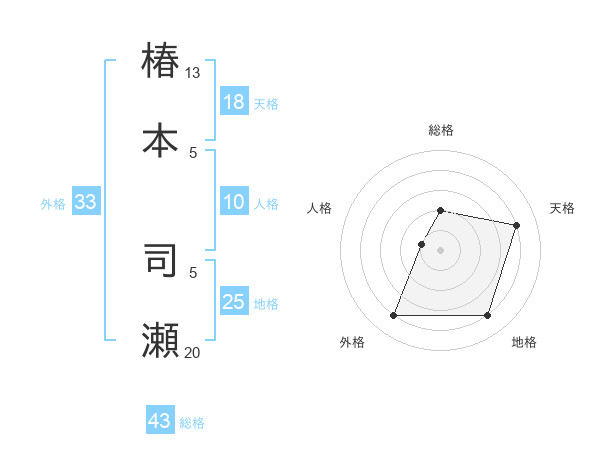 椿本 司瀬さんを姓名の画数から五運を鑑定
