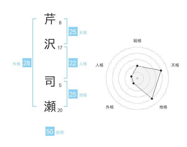 芹沢 司瀬さんの総格は50画の2点!