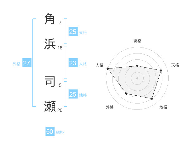 角浜 司瀬さんの地格は25画の4点!