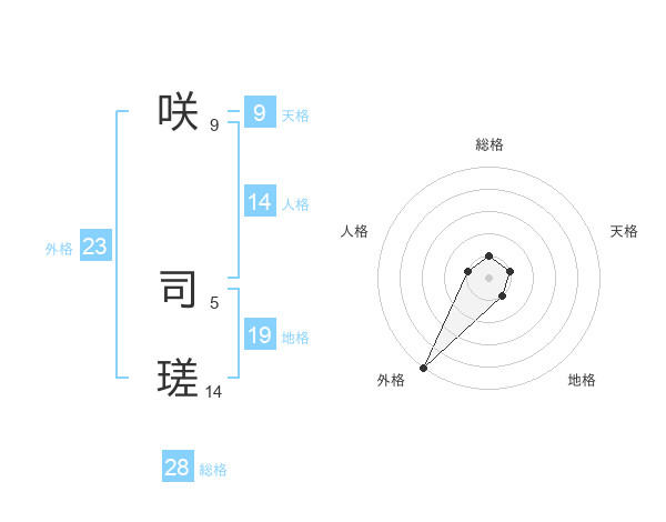咲 司瑳さんの総格は28画の1点!