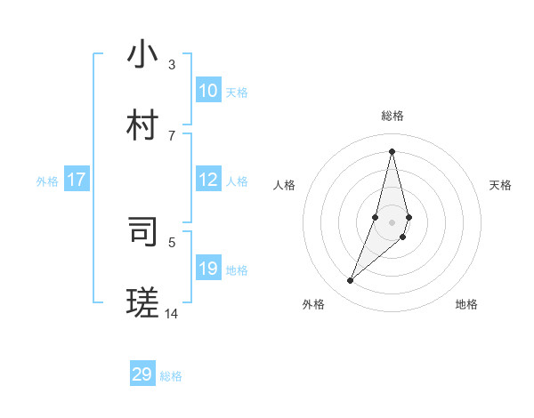 小村 司瑳さんの総格は29画の4点!
