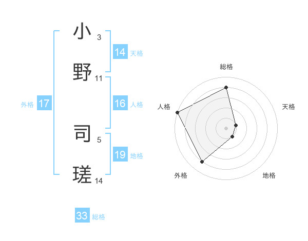 小野 司瑳さんを姓名の画数から五運を鑑定