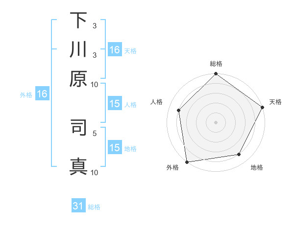 下川原 司真さんの総格は31画の5点!