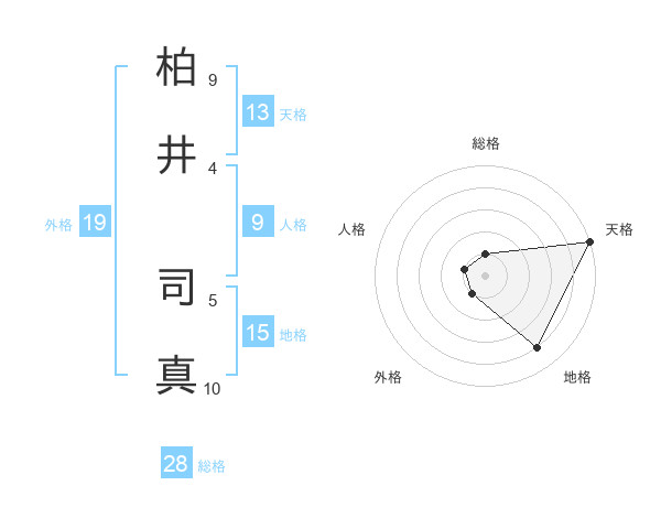 柏井 司真さんの天格は13画の5点!