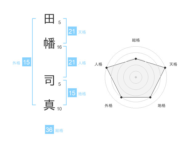 田幡 司真さんの天格は21画の5点!