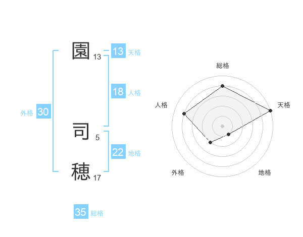 園 司穂さんの天格は13画の5点!