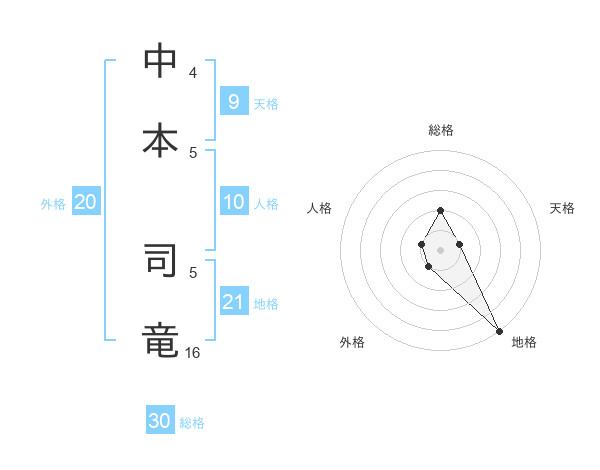中本 司竜さんの総格は30画の2点!