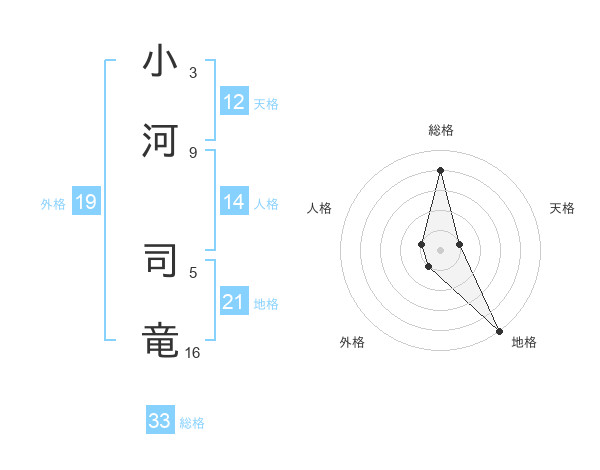 小河 司竜さんの総格は33画の4点!