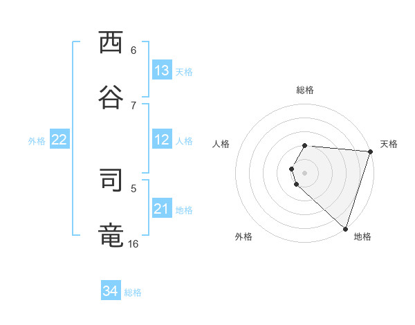 西谷 司竜さんを姓名の画数から五運を鑑定
