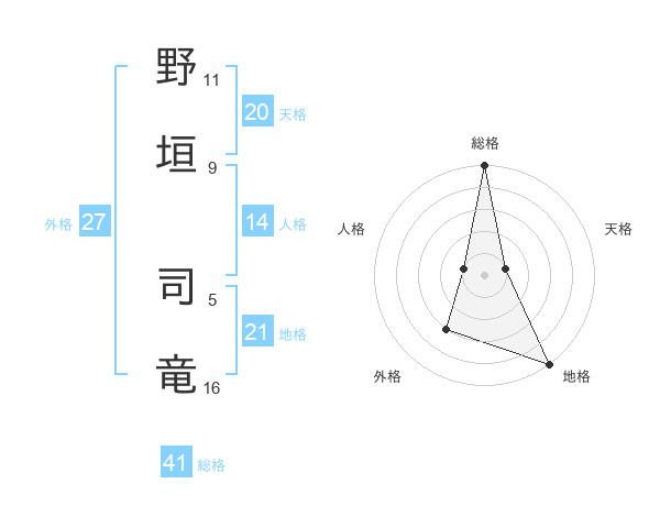 野垣 司竜さんを姓名の画数から五運を鑑定