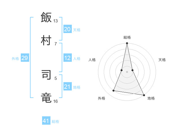飯村 司竜さんの外格は29画の4点!